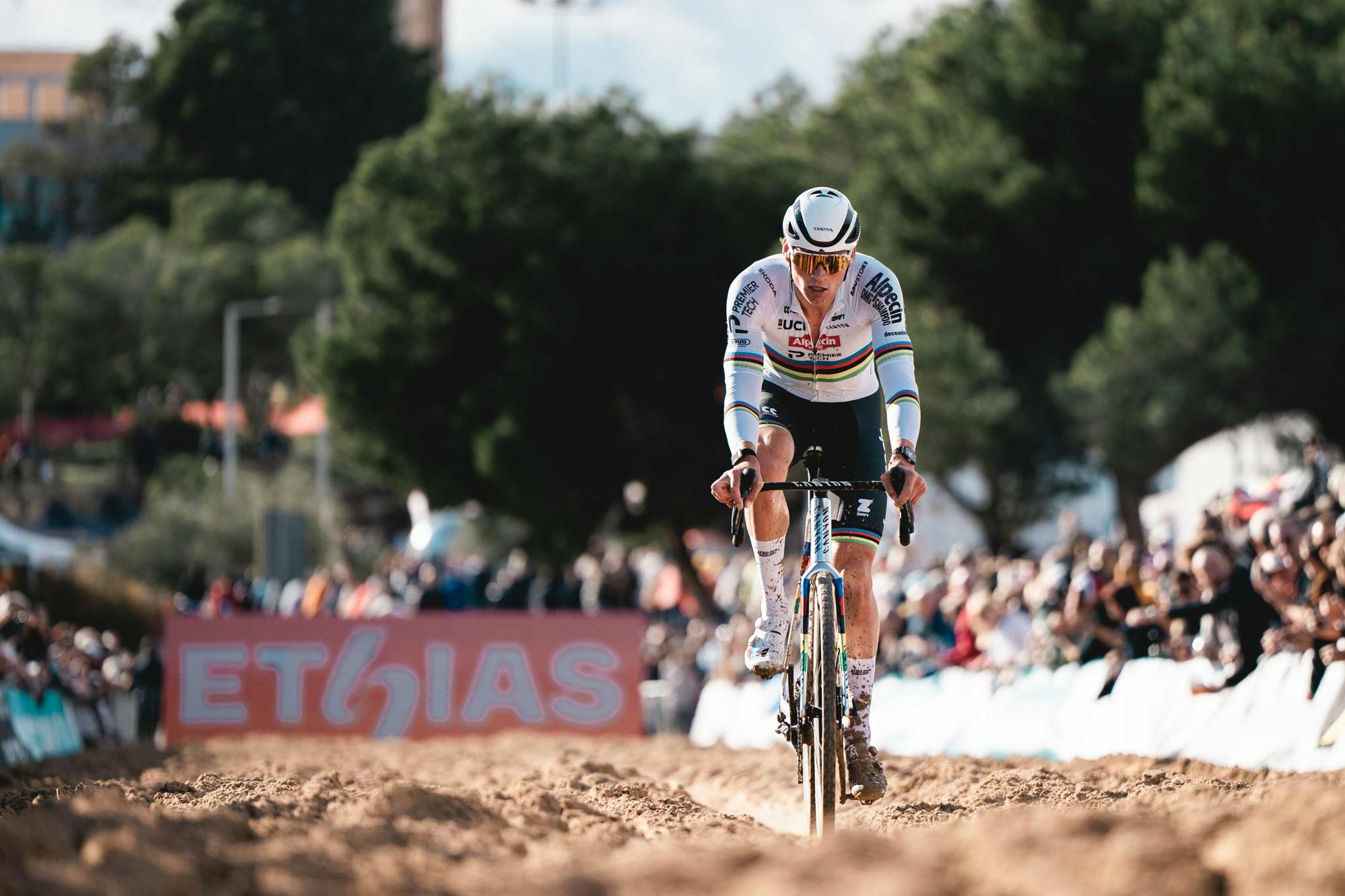 Mathieu van der Poel claimed his sixth World Cup victory of the season in Benidorm. The world champion launched an impressive solo attack at the end of the opening lap. Thibau Nys and local rider Felipe Orts joined Van der Poel on the podium.